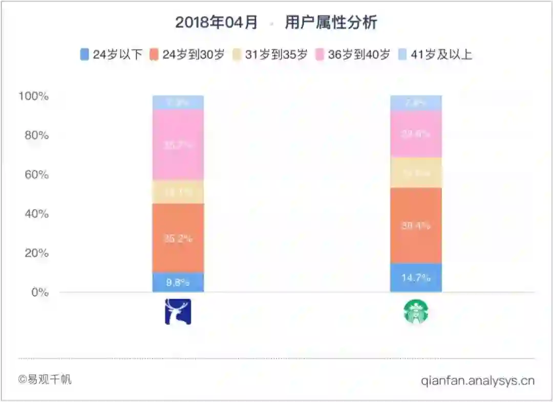 瑞幸咖啡、星巴克中国APP用户年龄对比