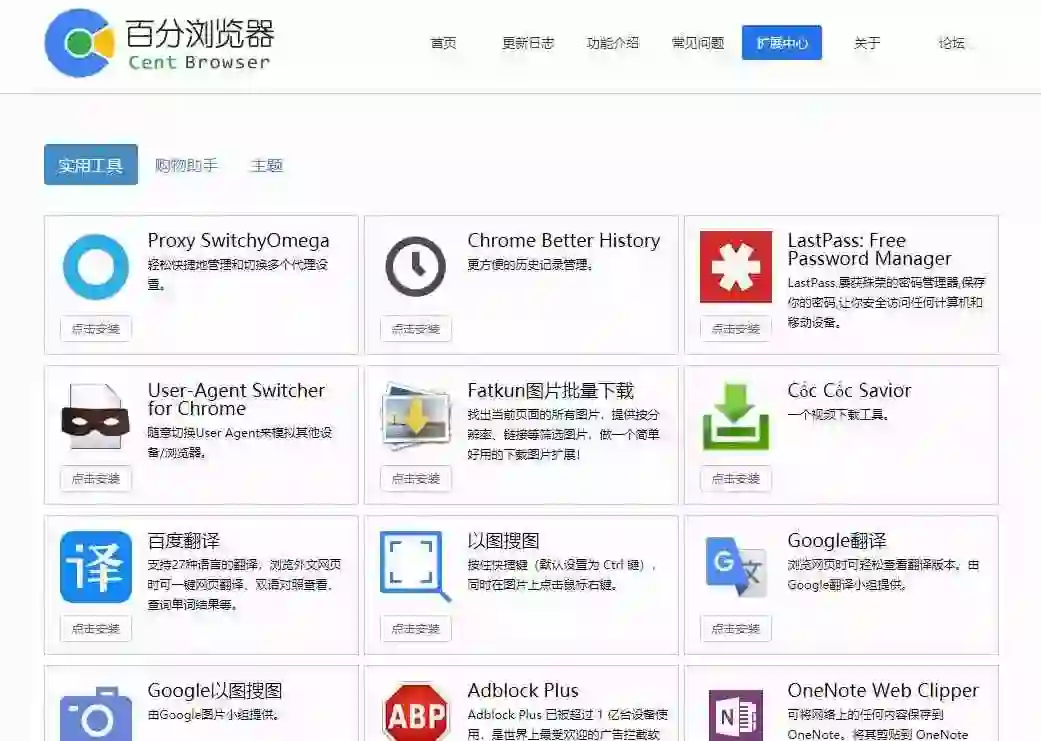 星愿浏览器同样使用谷歌 Chromium 引擎,插件不仅能用,还比百分浏览器数量多不少。