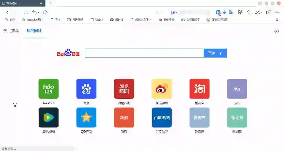 然后界面非常简洁,没有整些花里胡哨设计,启动页就可以清晰看到书签栏,常浏览的网站。