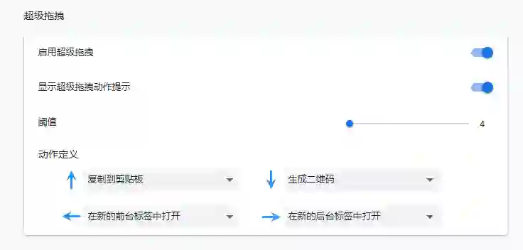 这个功能说白了就是增加一个快捷手势,让你拖动图片、文字时就能执行指令。(拖动时按住鼠标左键)