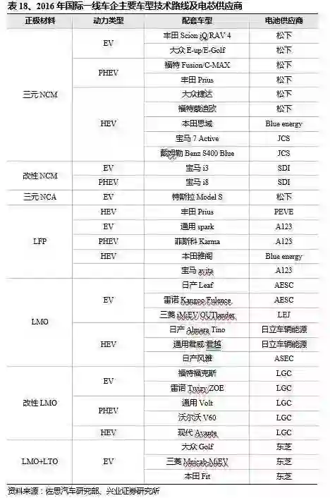 国际一线车企主要车型的电芯供应几乎由日韩电池企业包办。2016 年销量排行前 20 车型中,对应的电池供应商有日本的松下和 AESC,韩国的 LG 化学、三星 SDI 和 SKI,北美电动汽车电池的供应商基本被日本和韩国垄断。本土暂时由于政策因素使得日韩巨头未能大规模进入,但是仍然不能掩饰本土企业在技术储备上相较日韩巨头的劣势。