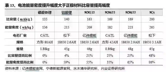 正极材料:高镍 NCM 材料与 NCA 材料,高比能量的正极材料能够大大减少负极、隔膜与电解液等材料的用量。