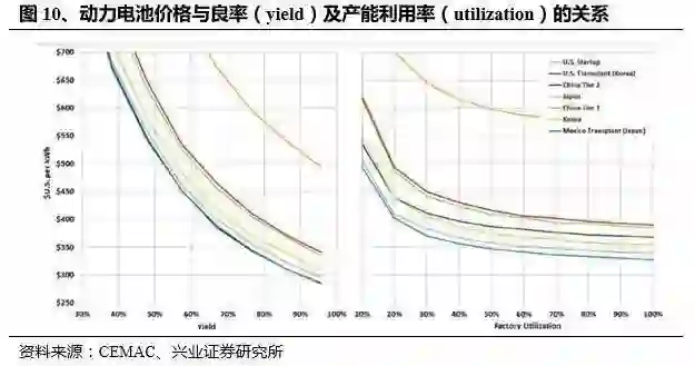 兴业证券认为相较有限的压缩原材料成本,通过扩大产能实现规模效应降成本更为切实可行,这也是国内企业近期集中堆砌释放产能的关键因素之一。规模效应不仅包括电芯环节产能利用率与良率提升带来的电芯成本下降,也包括整车端单车出货提升带来的研发投入、设计成本以及 PACK 和 BMS 等环节下降。