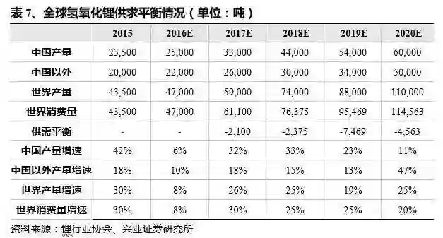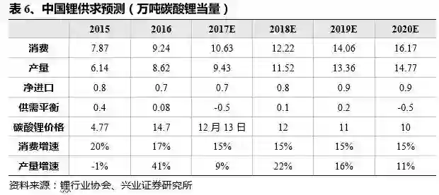 预计碳酸锂未来几年内将保持供需平衡,长期来看价格处于高位回落通道中。氢氧化锂直到 2020 年仍将维持紧缺状态,2020 年以后可能存在供应过剩风险,产能释放速度取决于原料供应,特别是锂辉石的供应量。氢氧化锂产能紧缺将成为制约高能量密度电池成本下降的主要因素。氢氧化锂可通过碳酸锂转产得到,代价在 2 万元/吨的水平,因此与碳酸锂价差将保持相应的平衡态势。