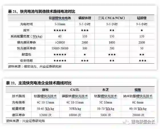 以钛酸锂为负极材料的钛酸锂快充电池路线,新型锂电体系有望大幅突破现有比能量极限。