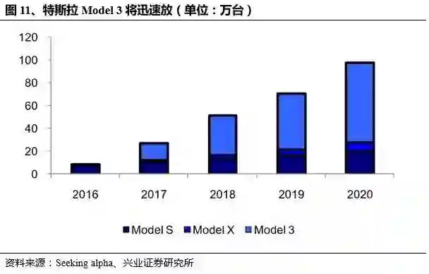 阶段3:为超级电池工厂建成之后(2017-):电池成本下降 30% 以上。预计 21700 单体价格为 $3.3,折合 0.14美元/w。由于 Model3 电芯数量较少且容量较少,预计 Model3BMS+PACK 成本为 $2880 左右,综合电池包成本为 $6960,电池包成本占比 29%。
