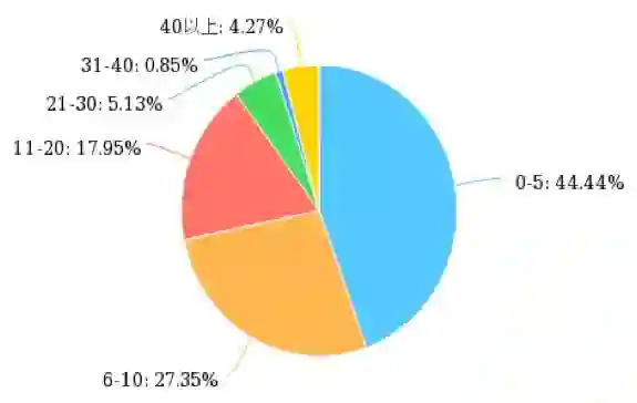 大学生信息囤积现象虽较普遍,但从图1可以看出,大部分大学生一周收藏的信息并不多,收藏0-5条信息的学生比例最大。大部分学生出于自主获取信息或个人发展目的而关注的公众号数量也在0-10个以内。