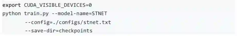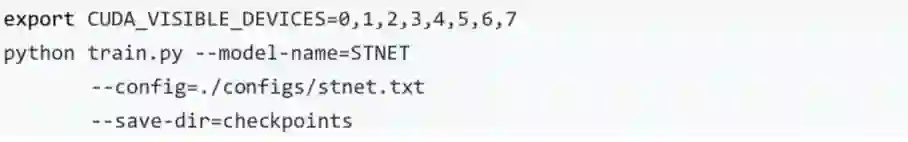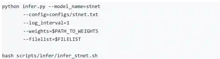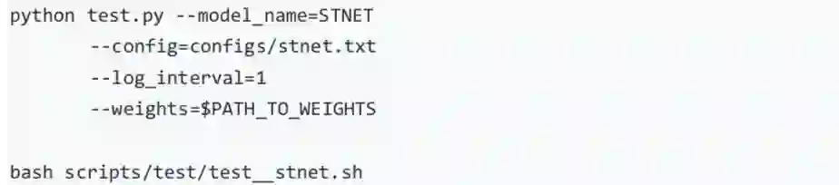 注 1:使用 scripts/test/test_stnet.sh 进行评估时,需要修改脚本中的 --weights 参数指定需要评估的权重。