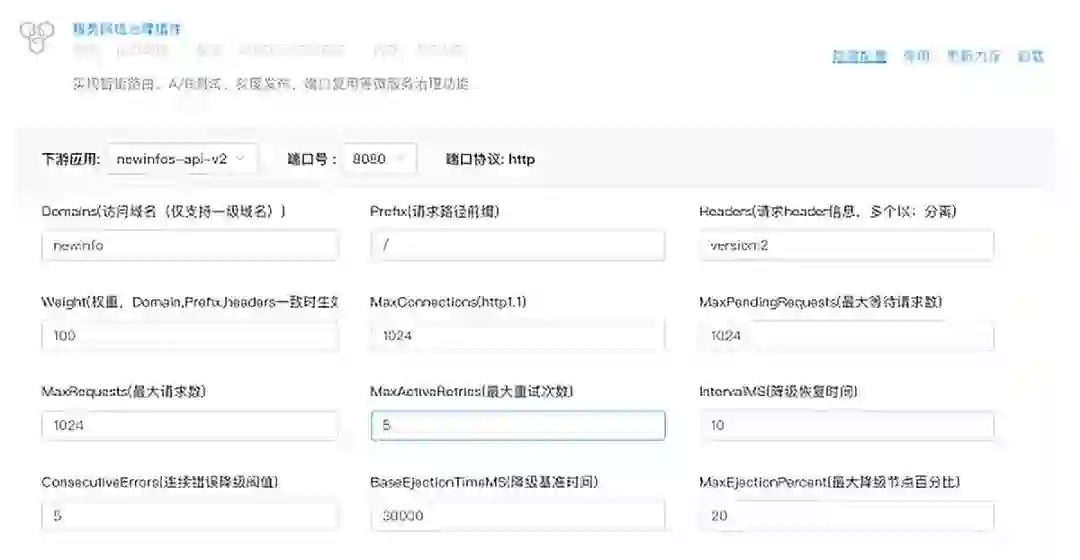 以上功能的实现对于业务系统来说相对复杂,而在上文提到的 Rainbond 高级负载均衡支持下,仅需为每个调用线路配置简单的限流参数或者熔断参数,即可实现断路器和限流机制开箱即用。