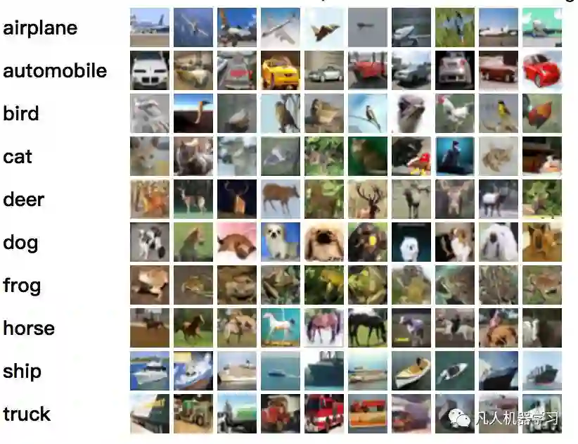 本文使用的数据是开源数据集cifar10,这份数据是一份对包含6万张像素为32*32的彩色图片,这6万张图片被分成10个类别,分别是飞机、汽车、鸟、毛、鹿、狗、青蛙、马、船、卡车。数据集截图: