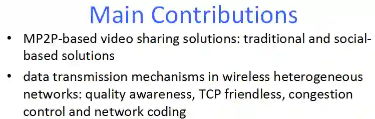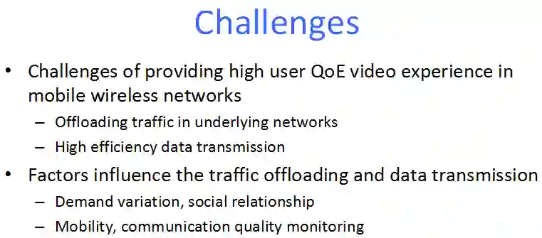 如今,在移动互联网的支持下,视频服务如IPTV,直播,点播,视频会议,视频电话等业务获得了爆炸式增长。而随之而来的流量海啸,用户多变行为等问题给高效的视频资源分享与传输带来了巨大的挑战。本文对当前的视频分发与传输研究进行了综述。文章首先讨论了基于移动对等网络(MP2P)的视频分发机制,并将其分为了两大类,对每一类的设计原理,优缺点进行了深入的讨论。我们还进一步讨论了在无线异构网络场景下的视频传输机制。此外,我们还总结了基于信息中心网络的视频分发策略,重点从缓存以及按名字路由两方面对现有的研究进行的总结归纳。最后,我们指出移动多媒体内容分发与传输研究所存在的开放性问题以及挑战,为后续的研究指明了方向。