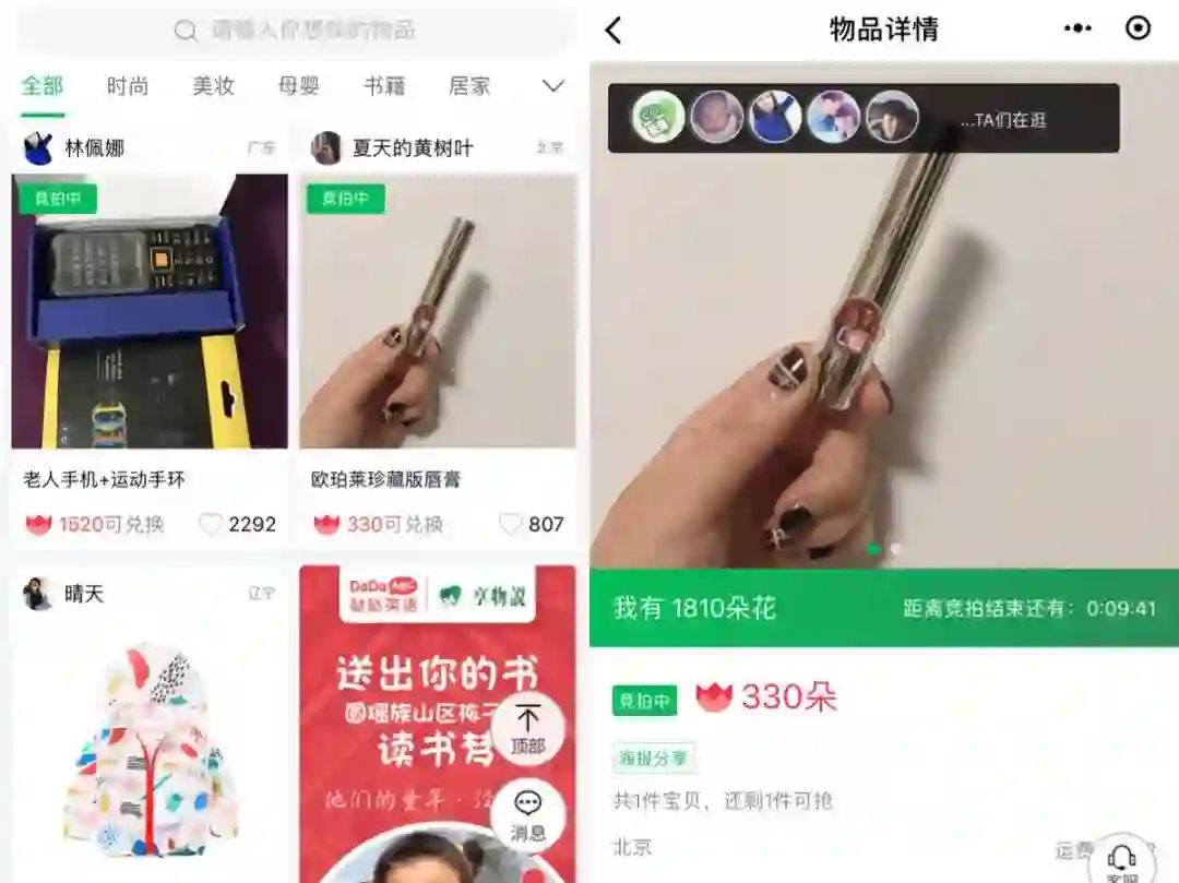 这其中最主要的原因在于,用户对积分不如对钱敏感。传统C2C交易效率低,主要是因为买卖双方对同一件东西的价值认知不一致(比如双方可能在砍价中花掉不少时间)。但如果使用小红花,用户对价格不敏感,并且可能高估用积分换取物品的价值,因此决策更快,对商品容忍度高,不会产生太多“售后”问题。