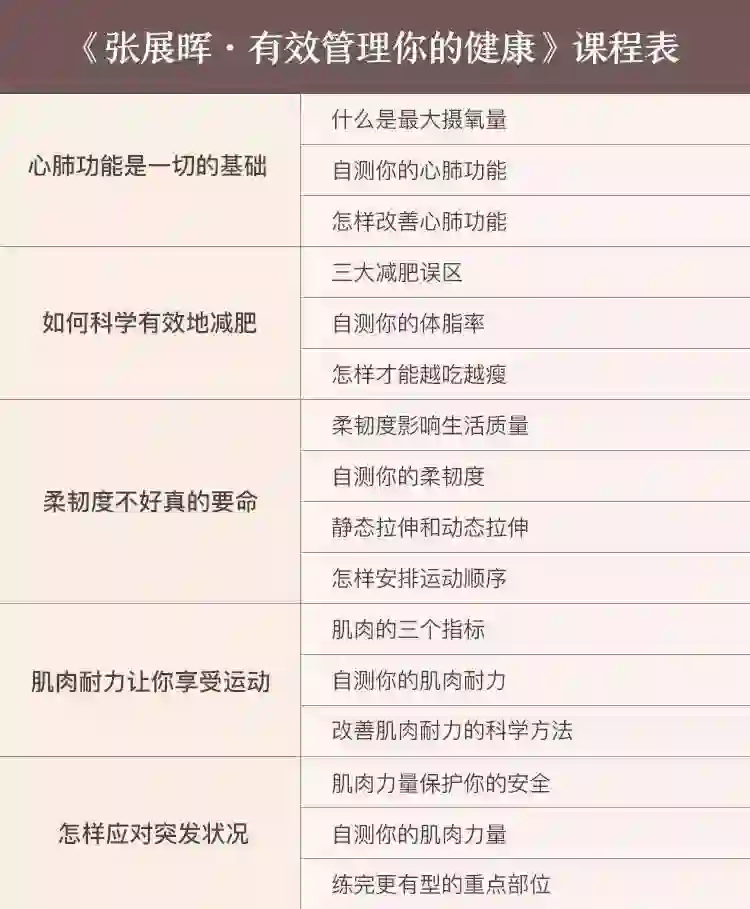 《有效管理你的健康》这门精品课,从改善你的健康状态出发,循序渐进地教会你一整套健康管理方案。