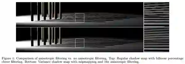 [18] Donnelly, William, and Andrew Lauritzen. "Variance shadow maps."Proceedings of the 2006 symposium on Interactive 3D graphics and games. ACM, 2006. http://www.punkuser.net/vsm/vsm_pa