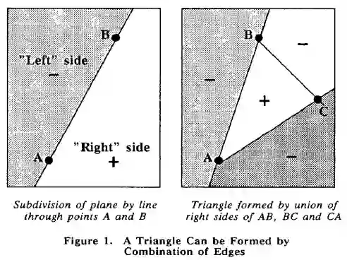 [4] Pineda, Juan. "A parallel algorithm for polygon rasterization." ACM SIGGRAPH Computer Graphics. Vol. 22. No. 4. ACM, 1988. http://people.csail.mit.edu/ericchan/bib/pdf/p17-pineda.pdf