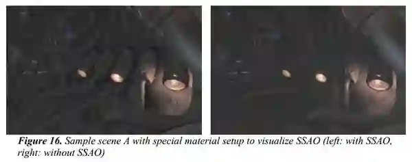 Screen-space Ambient Occlusion (SSAO)[7]:Crytek提出的首个屏幕空间环境光遮蔽算法,之后引来大量的研究及改进算法。也有用类似的概念去做近距离的反射,如SSDO[8]。