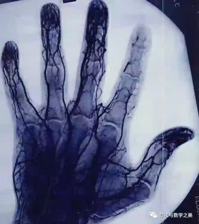 血管造影显示溜溜球高手的食指血管组织损伤和减少