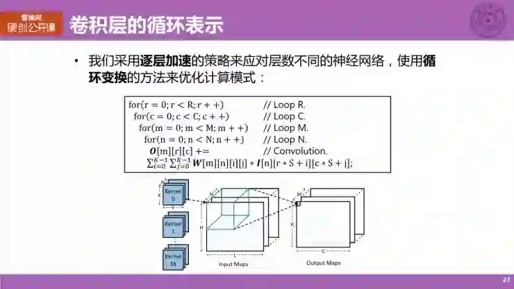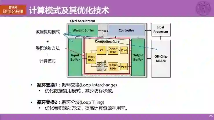 我们通过对循环进行优化,实际上就可以把它转换成对神经网络特别是卷积层的计算模式优化,并采用循环变换一个很好的方法,对计算模式进行优化。