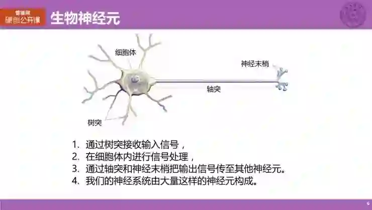 那么什么是神经网络?我们不妨从神经元开始理解。如图所示,这是一个生物上的神经元。它由树突、细胞体、轴突和神经末梢这四个部分构成。