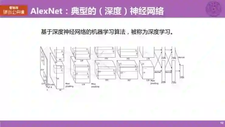 AlexNet 是一个非常典型的、被大家广泛研究的神经网络,因为它的层次很深,共有 8 个层次,人们也称之为深度神经网络,而基于深度神经网络的机器学习算法,我们也给它取了一个非常好听的名字叫「深度学习」。大家经常会在媒体上听到词,其实它的本质依然是神经网络。