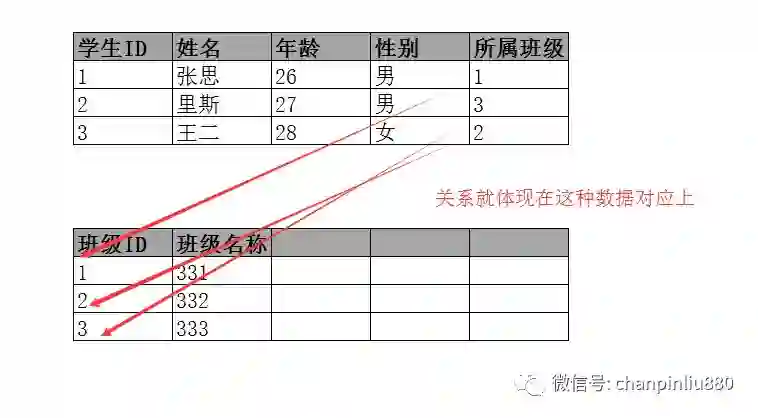 关系型数据库中所有的数据基本上都是有关联的,通过一个数据和其他的一个数据进行有效的关联,举个例子,比如下图可以根据班级的ID找到对应的班级名称。