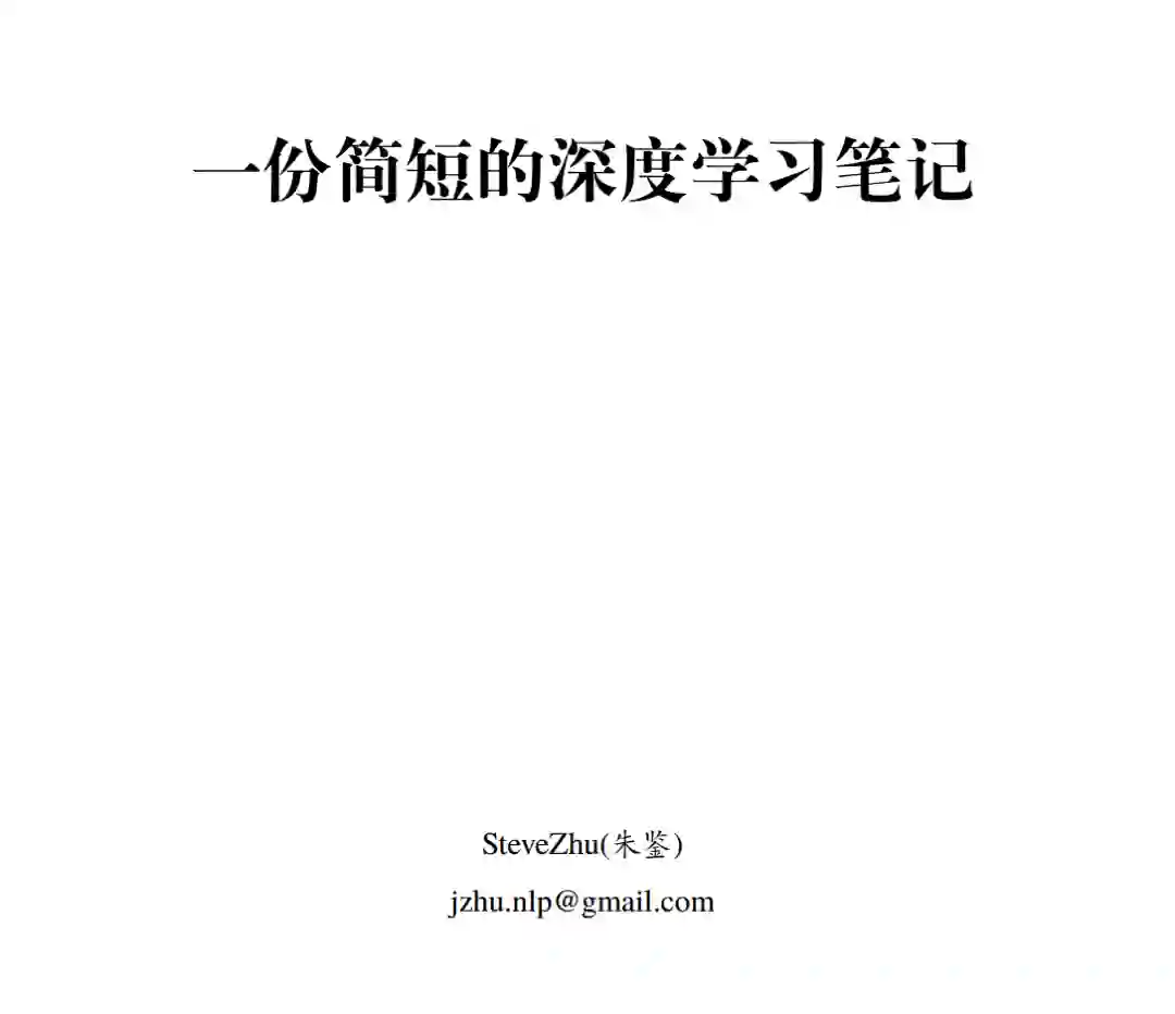 推荐一份网友朱鉴整理的《一份简短的深度学习笔记》资源,简洁、全面、详细。从深度学习设计的微积分、线性代数、概率论、凸优化开始讲起,然后详细整理了深度学习中所有的基础知识,涉及神经网络与反向传播、激活函数原理、损失函数、参数优化和网络结构等详细的深度学习基础知识。