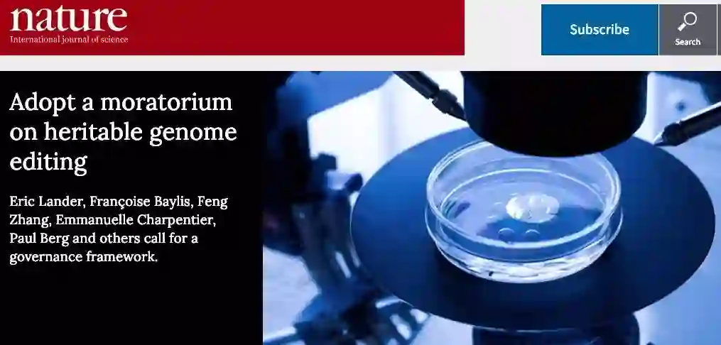 北京时间3月14日凌晨,顶级学术期刊《自然》(Nature)在线发表了一篇评论文章,来自7个国家的18名科学家和伦理学家呼吁:全球暂停所有人类生殖细胞系基因编辑的临床应用。