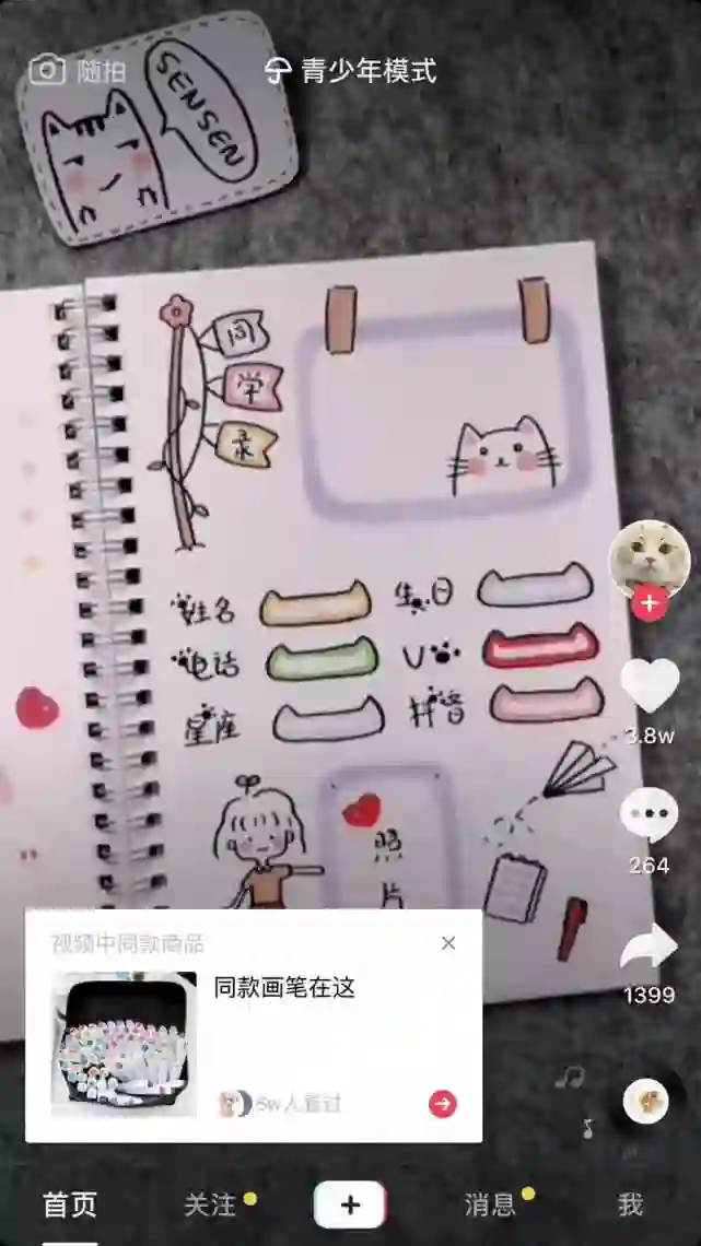 记者在用青少年模式浏览抖音所推送的视频时看到,不少视频内容上传者在展示绘画、书法等技巧时,左下角总会“恰到好处”地弹出视频中所使用的工具购买链接。
