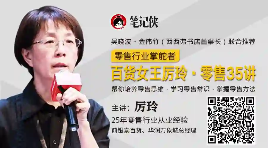 这一次,我们把被业界称为“零售行业掌舵者”,被吴晓波称为“中国零售业的元老级人物”厉玲,邀请到了笔记侠。她将25年一线零售管理经验,前后为20多家企业做顾问、咨询的经验,浓缩成用自身实战案例系统架构零售本质的课程——《百货女王厉玲·零售35讲》。