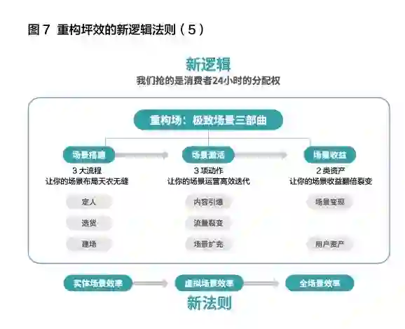 当下零售商家在场景效率的比拼,其本质是在抢夺消费者24小时的分配权。对于传统零售商家来说,全场景效率是终极目标,可以采取三步演进法(如图7)。