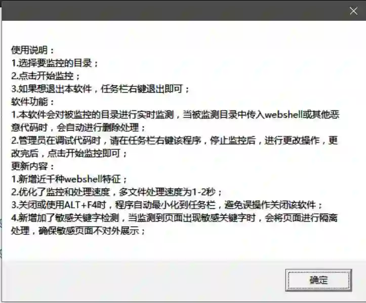 ①提升了监控到网马后的处理速度,优化了高频率上传的处理速度,10文件同时上传,1秒内处理完毕。