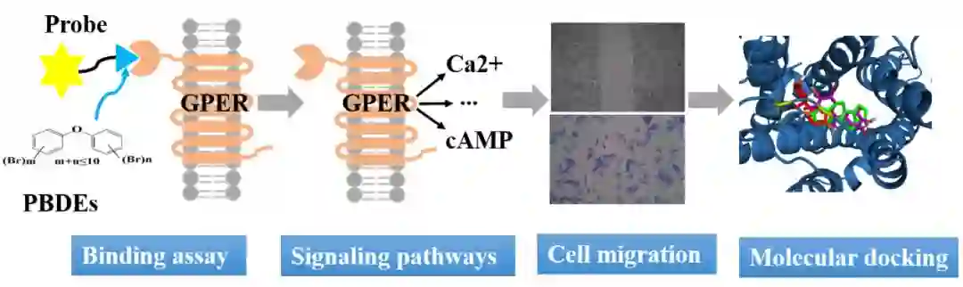 PBDEs是一类在日常生活中广泛使用的溴代阻燃剂。环境流行病学研究揭示了人体PBDEs暴露与内分泌系统不良健康效应之间的密切相关性。动物实验表明PBDEs暴露可以导致甲状腺激素和雌激素相关的功能受到影响。然而,目前对于PBDEs产生内分泌干扰效应的毒性机制还不明确,对PBDEs在生物体内的作用靶分子、分子起始事件 (MIE) 和有害结局通路 (AOP) 还未完全揭示。