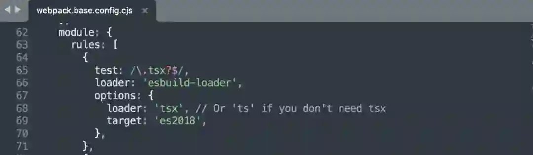 使用了 esbuild-loader 作为 TypeScript 文件的加载器
