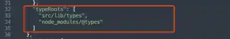 然后是 typeRoots,它默认值是 node_module 下的 @type,以及各个子路径下的 node_modules /@types。它的作用是:我们代码中 import 的一些第三方库,这些库的类型文件有全局声明,只有把他们添加进来,全局声明才会生效。需要注意,如果自定义 typeRoots,那么默认值就失效了,不要忘记手动把 node_modules/@type 也添加进去。