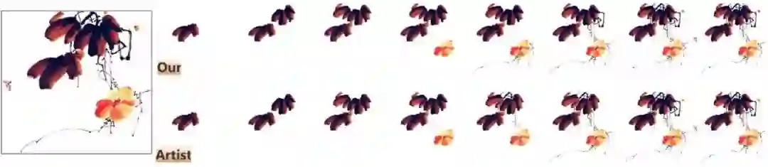 图5 水墨画绘制过程动态展示及与画家实绘过程的对比