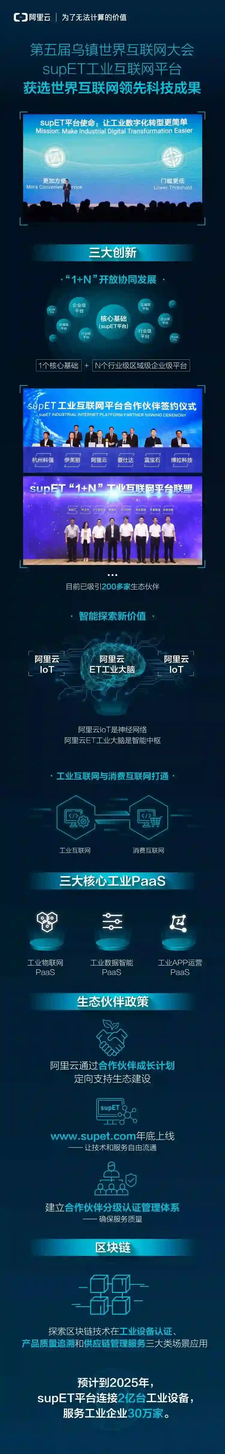 基于科技普惠的使命感,阿里云牵头建设了supET平台,打造包容、共赢、开放、协作的工业互联网生态,为制造业企业提供一站式的数字化、网络化、智能化服务。