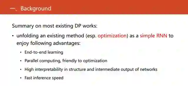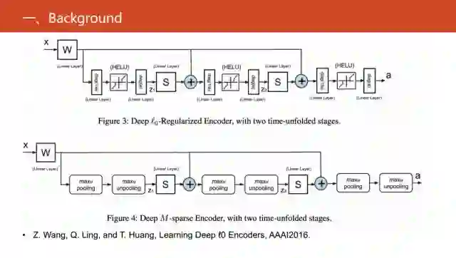 将这些研究进行归纳总结,就是把一些现有的统计机器学习方法,特别是现有的优化过程展开,形成一个简单的神经网络,且其中大多都是一个简单的回复式神经网络。从而使它能享有传统机器学习的优点,比如端到端学习,同时兼具易于优化以及高可解释性等优点。