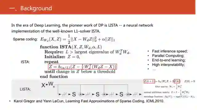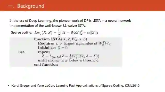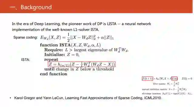 下面给大家介绍一下我们的第一个工作。我们这项工作从可微编程出发,来研究稀疏编码的优化方法—ISTA 。