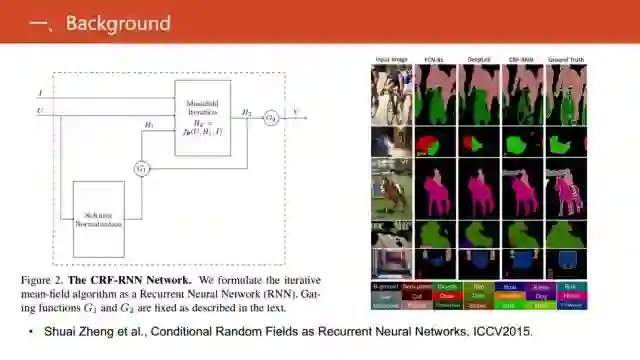另外,在2015的ICCV上《Conditional Random Fields as Recurrent Neural Networks》文章中提出,把条件随机场的求解变形成了循环神经网络的相关运算,在图像语义分割上实现了突破。