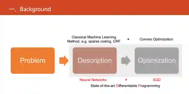针对现实世界中的一些问题,传统的机器学习的方法思路是首先基于一些假设或者先验知识(比如稀疏编码等),将其形式化成目标函数,再对其进行优化求解。但当得到一个新的目标函数时,我们还需要研究目标函数数学上的性质对其进行优化,如目前最流行的优化方法--凸优划。