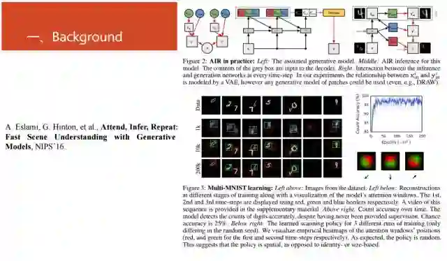 随后有很多的进展,比如2016年NIPS上的文章《Attend, Infer, Repeat: Fast Scene Understanding with Generative Models》关于生成模型的工作,这项工作也是目前比较热门的研究。