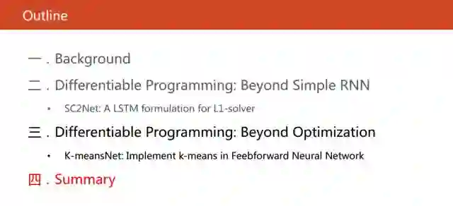 最后简单地概括一下,相对现有的可微编程,我们是将优化的过程或者说具体的基于LSTM优化的过程和长短期记忆网络,最后掌握了他们之间关系。这对可微编程有一些促进的作用,也可以从另外一个角度理解长短期记忆网络。