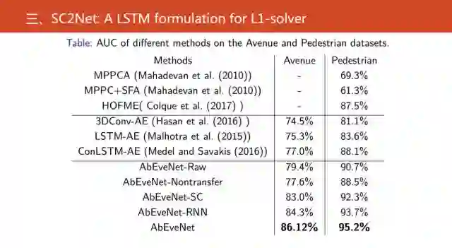 通过实验可以看到,我们的结果是目前是最好的异常事件检测算法。