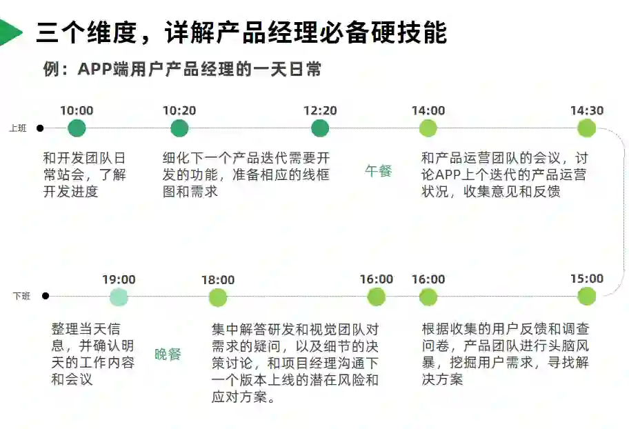 产品经理日常工作中需要哪些硬技能?老师将以APP端用户产品经理的一天日常举例,从三个维度为大家拆解产品经理必备硬技能~