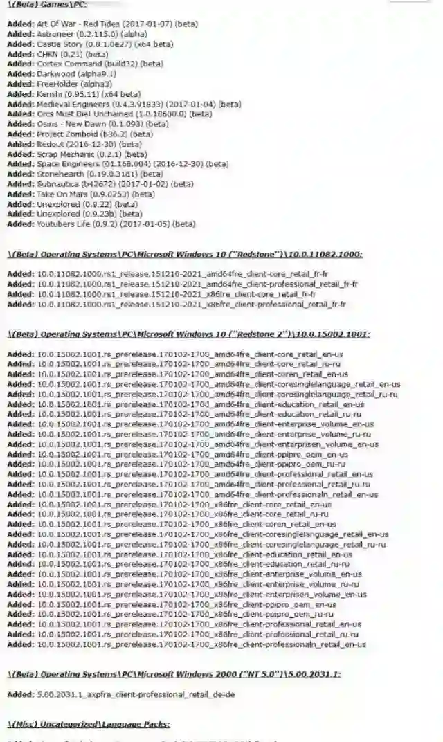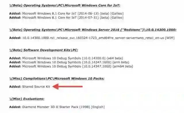 除此以外,至今尚未公开发布的Windows 10以及Windows Server 2016版本也一并被泄露出来。这些机密的版本本来是微软工程师出于寻找bug和测试目的而开发的,里面包括了私密的调试符号,在公开发布时往往会剔除掉。但是对于黑客来说,那些符号往往能透露重要信息。