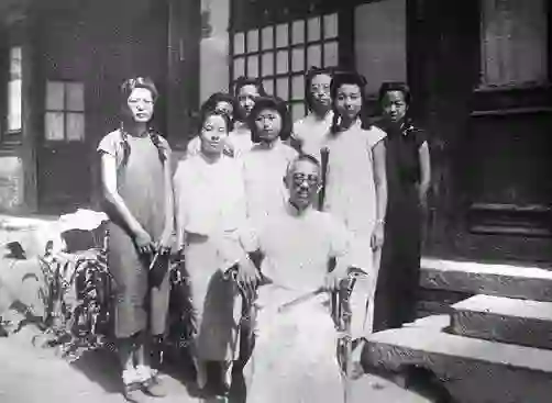 顾随与学生,坐者为顾随,顾随左手边为叶嘉莹