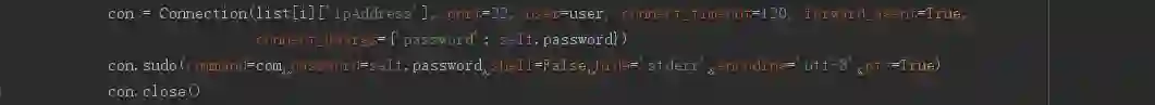 con = Connection(list[i]['ipAddress'], port=22, user=user, connect_timeout=360, forward_agent=True,