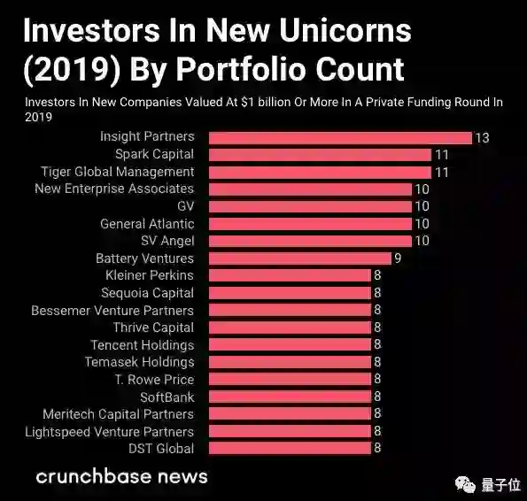 按照投资的公司数量算,最广泛撒网的19家金主都在这里了,其中来自纽约的Insight Partners投出了13家新独角兽,排名第一: