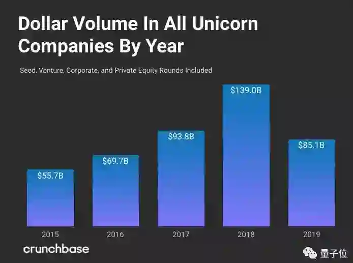 2019年,全球独角兽融资总计851亿美元,比2018年的1390亿美元下降了39%,也比2017年的938亿美元要低。
