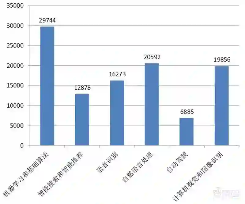 作为研究对象的技术分支包括:机器学习和基础算法、智能搜索和智能推荐、语音识别、自然语言处理、自动驾驶及计算机视觉和图像识别。以上六个技术分支在全球范围和国内的专利申请量分别如下表所示。